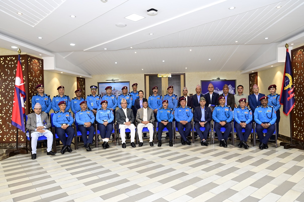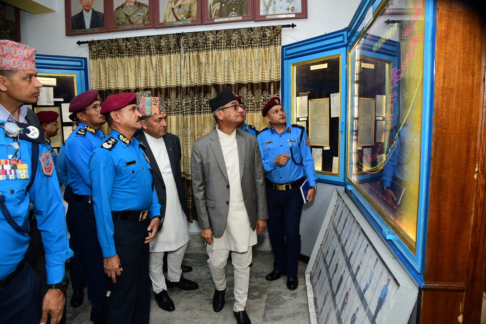 गृहमन्त्री रमेश लेखकले बुधबार नेपाल प्रहरी प्रधान कार्यालयको निरीक्षण भ्रमण गर्नुभई उपस्थित प्रहरी कर्मचारीहरूलाई निर्देशन समेत दिनुभयो । गृहमन्त्री लेखकलाई नेपाल प्रहरी प्रधान कार्यालयमा प्रहरी महानिरीक्षक बसन्त बहादुर कुँवर, प्रहरी अतिरिक्त महानिरीक्षकहरू, प्रहरी नायव महानिरीक्षकहरू लगायत वरिष्ठ प्रहरी अधिकृतहरूले हार्दिक स्वागत गर्नुभयो । सो क्रममा उहाँले नेपाल प्रहरी प्रधान कार्यालय परिसरस्थित अमर प्रहरी स्मारकमा पुष्प गुच्छा अर्पण गर्नुभयो ।
