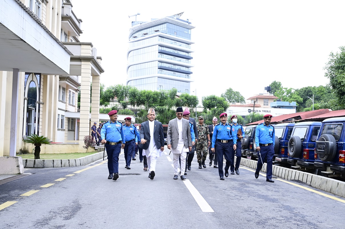 गृहमन्त्री रमेश लेखकद्वारा नेपाल प्रहरी प्रधान कार्यालयको निरीक्षण तथा निर्देशन