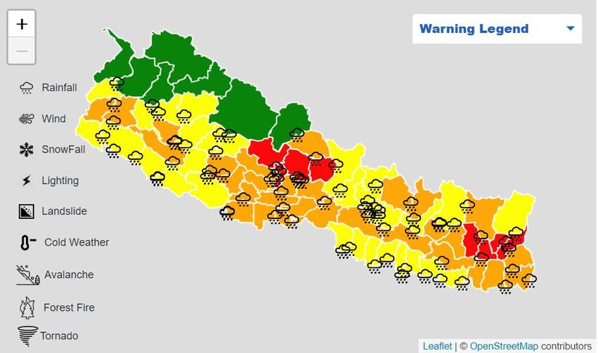 आज यी ठाउँमा हुनेछ भारी वर्षा,उच्च सतर्कता अपनाउन महाशाखाको अनुरोध